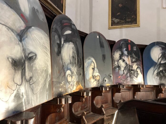 L’allestimento nell’abside della chiesa, all’interno del coro ligneo cinquecentesco e accanto a opere di maestri rinascimentali, creerà un intenso dialogo tra epoche diverse.