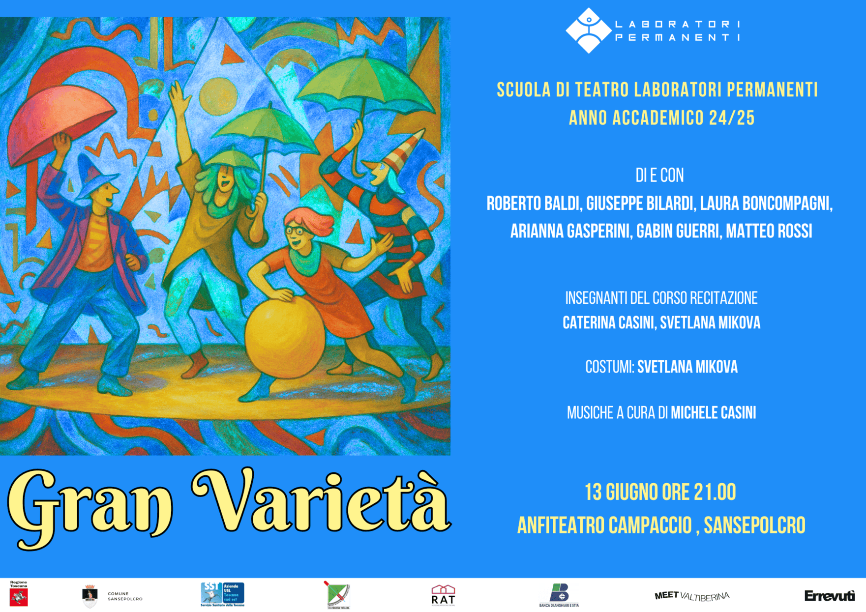 lo spettacolo dal titolo GRAN VARIETÀ andrà in scena venerdì 13 giugno ore 21.00 presso Campaccio, Sansepolcro (Ar).