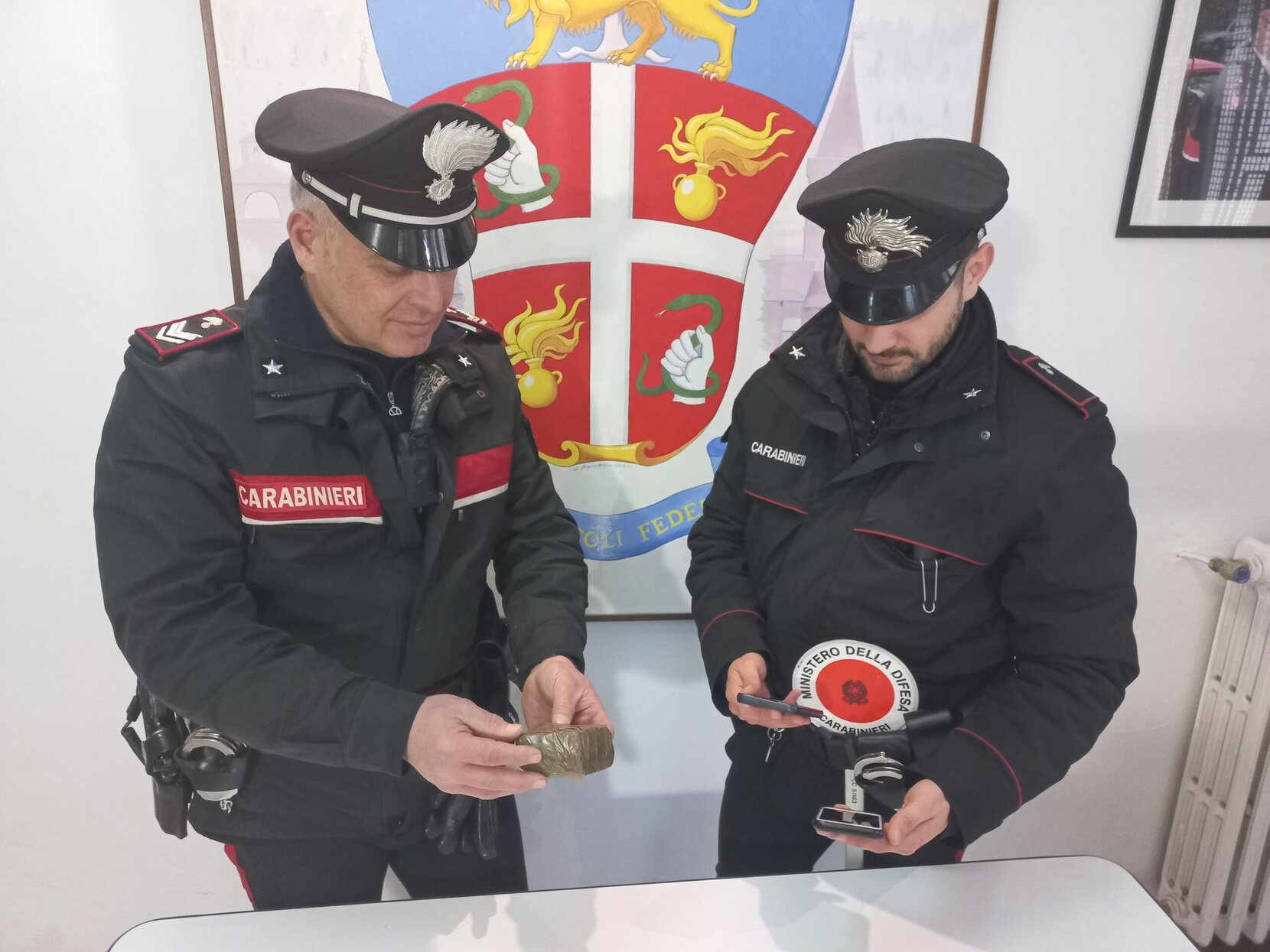 Il comportamento particolarmente nervoso dei due, ha indotto i Carabinieri ad approfondire il controllo, mediante perquisizione veicolare e personale.