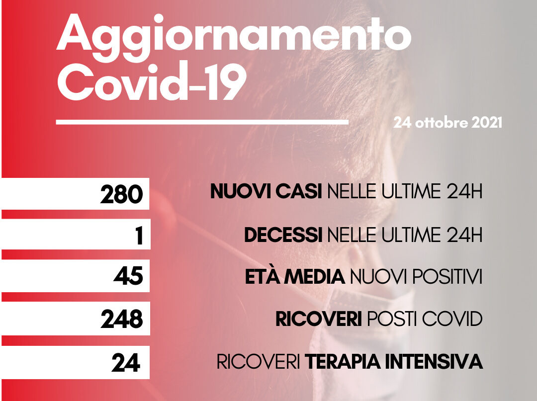 L’età media dei 280 nuovi positivi odierni è di 45 anni circa (21% ha meno di 20 anni, 17% tra 20 e 39 anni, 32% tra 40 e 59 anni, 21% tra 60 e 79 anni, 9% ha 80 anni o più).