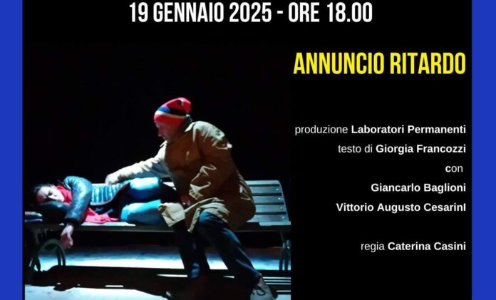 Domenica 19 gennaio 2025 si ritorna al Teatro G. Papini con il terzo appuntamento della rassegna: alle ore 18.00 in scena ANNUNCIO RITARDO una produzione Laboratori Permanenti, su testo di Giorgia Francozzi, con Giancarlo Baglioni, Vittorio Augusto Cesarini e la regia di Caterina Casini.